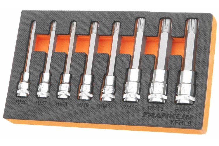 Franklin XF 8 pce Long Ribe Bit Socket Set 3/8" 1/2" dr